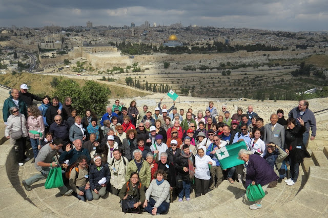kongreso. La antaŭkongresa grupo veturas per buso al Akko.